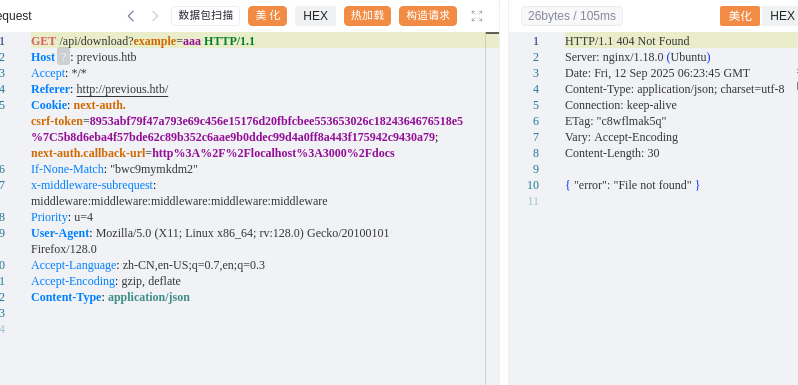 再抓包携带参数测试,发现 error 变成了无法找到,那应该有可以遍历其他目录